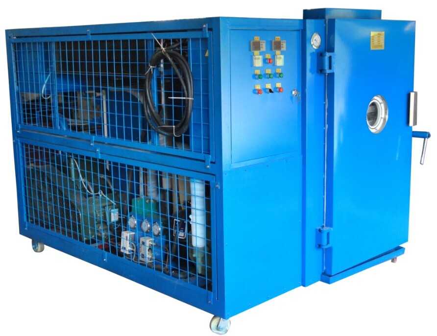 冷凍干燥機(jī)系由制冷系統(tǒng)、真空系統(tǒng)、加熱系統(tǒng)、電器儀表系統(tǒng)所組成,主要部件為干燥箱、凝結(jié)器、冷凍機(jī)組、真空泵、加熱裝置等。